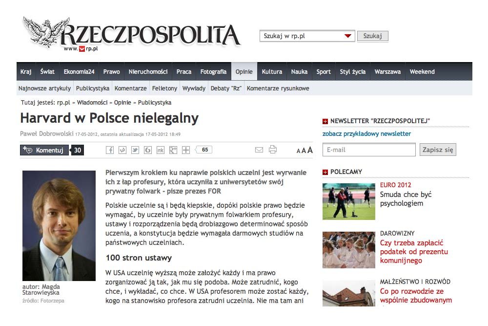 - Pierwszym krokiem ku naprawie polskich uczelni jest wyrwanie ich z łap profesury, która uczyniła z polskich uniwersytetów swój prywatny folwark - zarzuca Paweł Dobrowolski, prezes utworzonej przez Leszka Balcerowicza Forum Obywatelskiego Rozwoju. Jego zdaniem polskimi uczelniami właściwie nikt nie kieruje. - Rektora wybierają sobie sami profesorzy w imię samorządności i autonomii uczelni - uważa Dobrowolski.