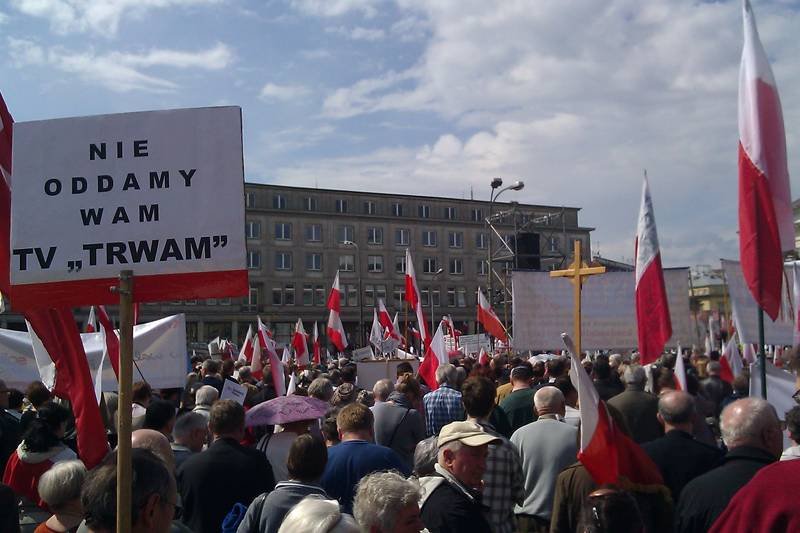 - Jesteśmy po to, by walczyć o wolne media, Telewizję Trwam i Radio Maryja - takie głosy, wśród 20 tysięcy zebranych osób, można było usłyszeć podczas dzisiejszego marszu, zorganizowanego na Placu Trzech Krzyży w Warszawie. Demonstracja odbyła się w proteście przeciw nieprzyznaniu Telewizji Trwam koncesji na cyfrową telewizję naziemną. Jak wynikało z naszych rozmów z uczestnikami - nie tylko po to.