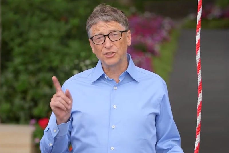 Wyzwani mają dobę na powtórzenie wyczynu albo płacą skromną kwotę na cele charytatywne. Gates podszedł do sprawy poważnie i na takę okazję skonstruował maszynę z zainstalowanym nad głową kubłem wody, który obraca się za pomocą sznurka.