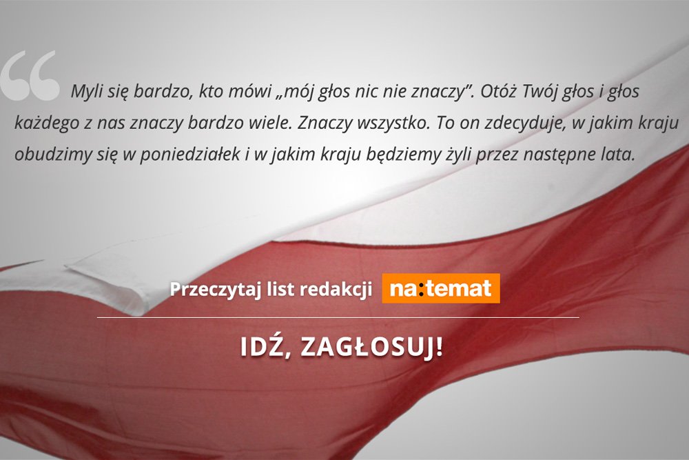Myli się bardzo ten, kto mówi „mój głos nic nie znaczy”. Otóż Twój głos i Twój głos, i głos każdego z nas – znaczy bardzo wiele. Znaczy wszystko. To on zdecyduje, w jakim kraju obudzimy się w poniedziałek i w jakim kraju będziemy żyli przez następne lata.
