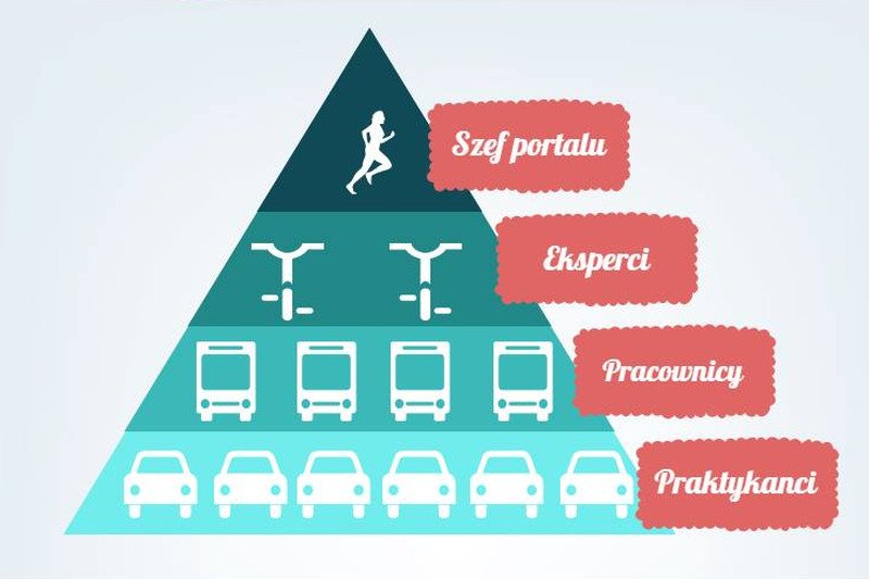 Biuro mieści się w dużo mniejszym od Warszawy Krakowie. – Nie ma żadnego problemu, aby dojechać do pracy rowerem czy komunikacją miejską – mówi. Mimo to, grafika którą stworzył niemal w stu procentach pokrywa się ze sposobem, w jakim poszczególne szczeble osób związanych z firmą docierają do pracy.