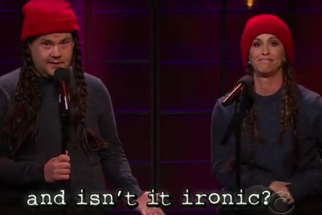Dziś z odsieczą podbija internety nowa wersja piosenki. W składzie Alanis Morissette i James Corden, brytyjski aktor i satyryk (rocznik 2015):