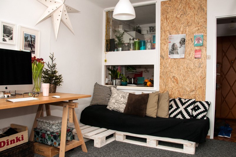 Wcale nie wydało mi się to zabawne. Ale teraz to okienko uważam za całkiem milutkie rozwiązanie. To iście hipsterskie, czuję się jak Pani Grażynka, która może podawać galaretę i sztukę mięsa swoim znajomym, którzy siadają na kanapie. Jeśli wynajmujesz, jest to zupełnie do zniesienia.