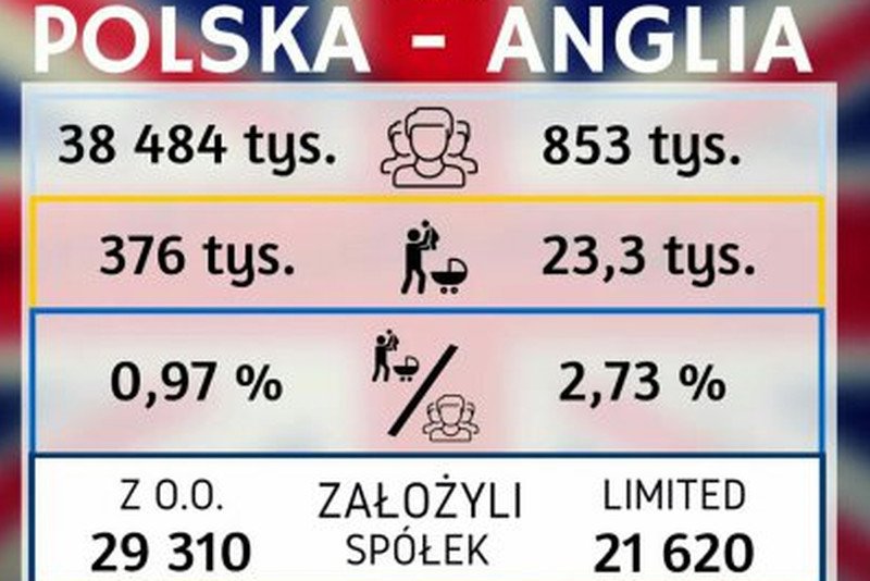 Polacy założyli w Wielkiej Brytanii w 2014 roku ponad 21 tys. Spółek LTD - wynika z raportu Companies House. W tym samym czasie, w Polsce powstało ponad 29 tys. spółek z o.o., czyli zaledwie 8 tys. więcej. Biorąc pod uwagę liczbę Polaków pozostałych w kraju (38 mln)i tych w Anglii (0,85 mln), jest to wynik zdumiewający i dający do myślenia.