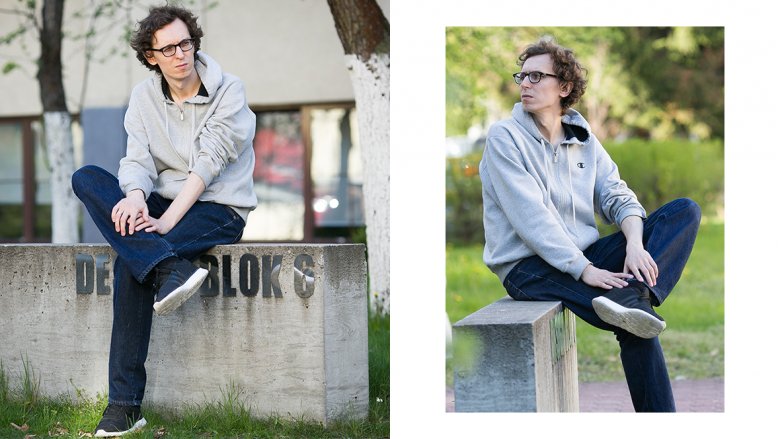 (śmiech) Nawet tego nie zauważyłem! Biły mnie po oczach te czerwone spodnie. I te białe buty. Nie miałem takich od czwartej czy piątej klasy szkoły podstawowej. Trochę mnie przerażały, na szczęście na zdjęciu wygląda to lepiej niż w rzeczywistości. W końcu mój styl to szara bluza, dżinsy i czarne buty.