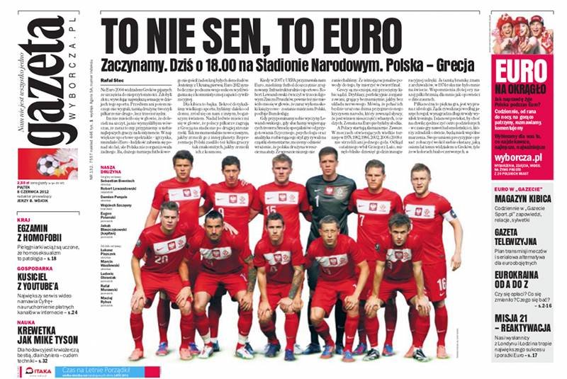Do rozpoczęcia Euro 2012 pozostało już tylko kilka godzin. Nie może więc dziwić, że mistrzostwa opanowały dziś pierwsze strony wszystkich gazet.