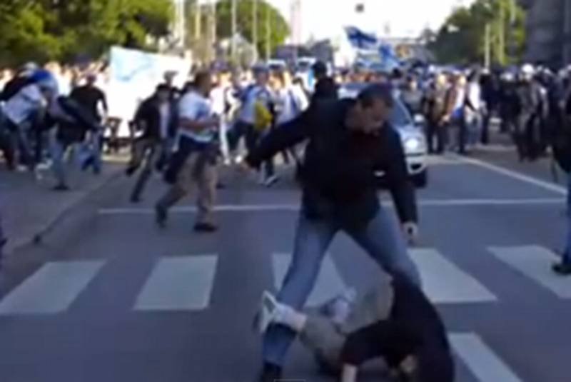 Na filmie widać starcie rosyjskich kibiców z fanami reprezentacji Finlandii. Mimo interwencji policji nie udało się uniknąć ulicznych zamieszek.