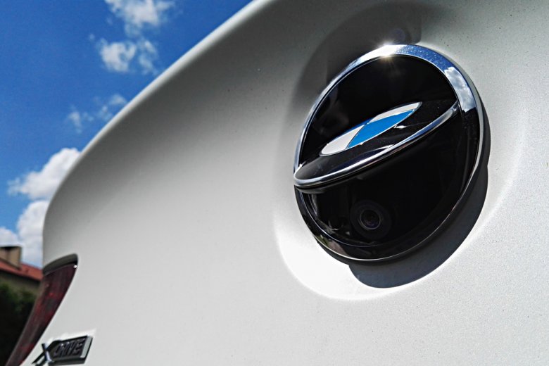 W oczy wpada też maska, która była wyjątkowa duża, a to od razu działało na wyobraźnię, co musi kryć się pod nią. Generalnie ta „szóstka” jest naprawdę szerokim samochodem. Bardzo zaciekawiła mnie też kamera cofania, która sama w sobie nie jest niczym wyjątkowym, ale tutaj zamontowano ją w nietypowym miejscu. Po wrzuceniu biegu wstecznego, logo BMW na klapie bagażnika się podnosiło i spod niego wysuwała się kamera cofania.
