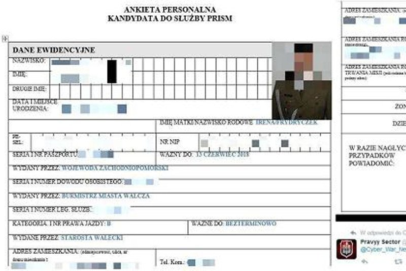 Hakerzy z grupy "Pravyy Sector" zagrozili polskiemu rządowi, że ujawnią ankiety personalne naszych oficerów. Zażądali 50 tys. dolarów w zamian za powstrzymanie się od publikacji. Rzecznik ministerstwa obrony uspokaja, że wszystko jest pod kontrolą.