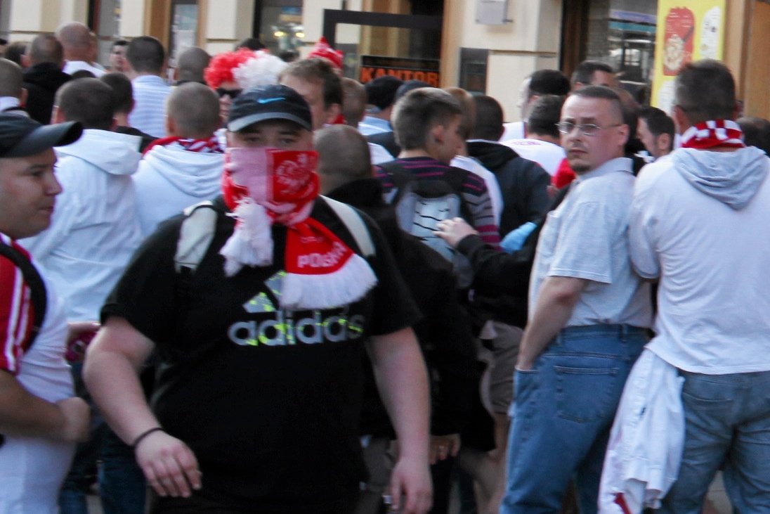 "Raz sierpem raz młotem, w czerwoną hołotę", "ole to my kibole", "bij ruska" czy "polska biało-czerwoni" to okrzyki, które od kilku dni nieustannie roznoszą się po Krakowskim Przedmieściu w Warszawie, 10 metrów od Pałacu Prezydenckiego. Hasła kierowane są do mieszkających tam rosyjskich piłkarzy. Reprezentacja "kibiców" szczególnie ożywia się, kiedy któryś z naszych wschodnich sąsiadów wyjrzy ukradkiem przez okno. "Patrzcie, rusek wyjrzał… je*** je*** ruskich" rozległo się donośnie zaraz potem. Pijane gardła tolerowane są przez przechodniów, tolerowane są też przez policję. Jeśli grupa liczy kilkadziesiąt osób, funkcjonariusze mają obowiązek jedynie "zabezpieczać teren".