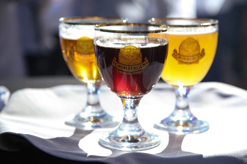Grimbergeny podawane są w odpowiedniej temperaturze (blonde i blanche – 6 st., double – 8 st.) i w kielichach o specjalnym kształcie i wielkości. Do tego nalewane są tak, by warstwa piany miała dwucentymetrową warstwę (dzięki niej piwo się nie wygazuje).