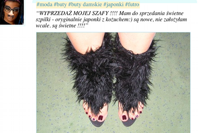 To prawdziwa jaskinia skarbów Alibaby. Sezam absurdu i dowodów na to, że są rzeczy na niebie i ziemi, które nie śniły się filozofom. Blog ma już 149 stron, a na każdej co najmniej trzy osobliwości. Dziwne swetry, które nie robiły furory już w latach 80., buty, których podeszwy proszą się choćby o leciutki retusz ( fizyczny lub photoshopowy), łaszki, których pani w Taniej Odzieży nie sprzedałaby za 2zł, podróbki wszystkiego na świecie, suknie ślubne, które zawstydziły niejedną pannę młodą z „My Big Fat Gipsy Wedding”, obuwie dla panów, którzy gustu uczyli się od Andrzeja Leppera i pantofelki dla pań, które wyznają zasadę : im więcej tym lepiej.