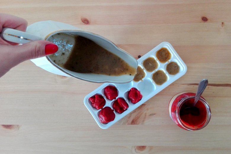 Podobnie bywa z przygotowaniem obiadu "na bogato". Przygotowanie sosu do mięsa wiąże się z przemyślanymi zakupami i kilkoma kwadransami nad kuchenką. A przecież w formie do lodu można mrozić również sos do mięsa czy koncentrat pomidorowy jako szybki dodatek do dań w wygodnej formie. Ta metoda nie wymaga nawet gotowania extra, specjalnie pod akcję "robimy zapasy" – przyznaj, ile marnuje się sosu np. z gulaszu, gdy braknie w nim mięsa...? Wystarczy regularnie zlewać do formy resztki, a po kilku razach w twojej zamrażarce będziesz miał wystarczająco dużo sosu na kolejny obiad.