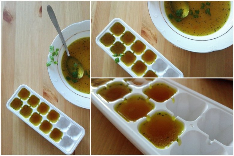 Doskonale znamy wyrzuty sumienia, kiedy niewyraźną zupę jarzynową doprawiamy kostką rosołową pełną glutaminianu sodu lub przyprawą typu Vegeta, bo bez tego smak jest zupełnie nijaki... Jeśli mamy czas i gotujemy zupę na mięsie, mamy większe szanse na intensywną pyszną zupę. Jednak często bywa tak, że na jej ugotowanie mamy 20 minut i wtedy wchodzą w grę wyłącznie "jarzynówki". Jak je naturalnie przyprawić, by było w nich więcej smak.? Tu na ratunek znów przychodzą zapasy z twojej zamrażarki. Domowej roboty kostka rosołowa to bardzo, bardzo, bardzo intensywny bulion przygotowany wcześniej i rozlany do formy do lodu. Nic prostszego i zdrowszego!