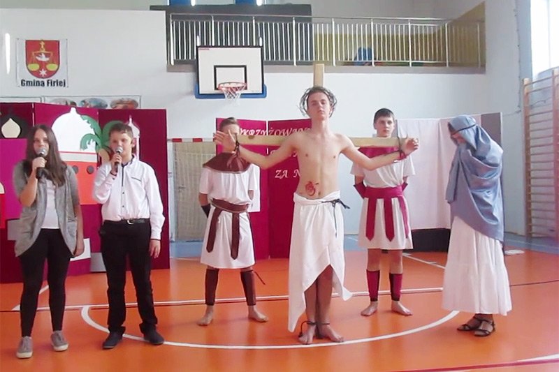 Jednak chyba czas, by do tych sugestii Benedykta XVI wrócić i na nowo je przemyśleć. Dość mocnego argumentu w tej sprawie dostarcza bowiem rozchodząca się po sieci relacja z Drogi Krzyżowej, którą w ramach szkolnego przedstawienia zorganizowano w Woli Skromowskiej na Lubelszczyźnie. Dyrekcja tamtejszej szkoły sama postanowiła pochwalić się w internecie tym, w jaki sposób uczniom zorganizowano przeżywanie Wielkiego Tygodnia. Zobaczcie więc to sami...