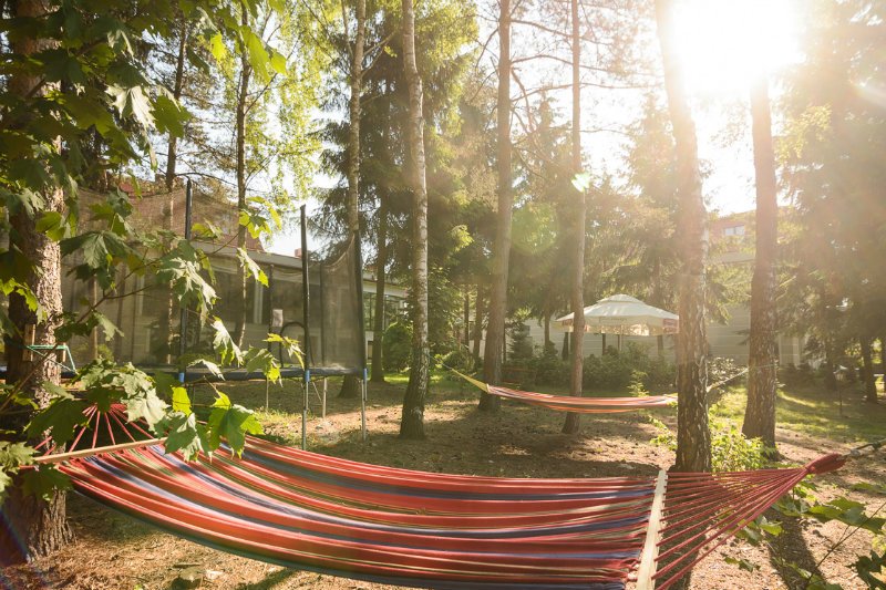 W czasie, gdy dzieciaki będą spalać pochłonięte podczas śniadania kalorie, wy rozłożycie się w ogrodzie na hamakach, albo weźmiecie udział w zajęciach jogi. Ewentualnie opcja dla średnio zaawansowanych: pooobserwujecie ćwiczących z pozycji hamaku i zdecydujecie, co zrobić z resztą dnia. Wspomniany piknik to kusząca opcja, ale równie dobrze możecie wybrać się na zwiedzanie pobliskiego Pałacu w Radziejowicach otoczonego niezwykłym kompleksem parkowym.