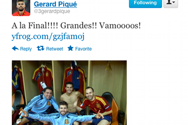 Gdy pomeczowe emocje trochę opadły, piłkarze reprezentacji Hiszpanii znaleźli chwilę, żeby podzielić się swoją radością z fanami. Na popularnym Twitterze pojawiły się zdjęcia, które wrzucił obrońca Gerard Pique i ten, który przypieczętował zwycięstwo La Roja, Cesc Fabregas.