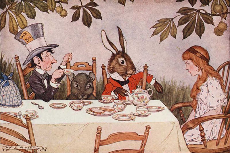 Są też tacy, którzy zarzucają Carrollowi bycie pod ciągłym wpływem opium w czasie pisania powieści. Wtedy właśnie w głowie tego wybitnego matematyka, którym był z wykształcenia, miałyby powstać szalone wizje, które w połączeniu z jego zainteresowaniem młodymi damami postanowił przelać na kartkę.