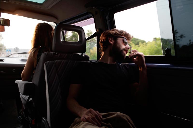 Jest rozkładany stolik, można też rozłożyć siedzenia na płasko, żeby zrobić szerokie i wygodne łóżko. Nad każdym siedzeniem lampka, a obok siedzeń uchwyty do butelek i puszek. Rzucamy bagaże na tył i wsiadamy.