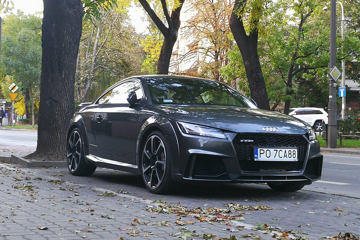 Najbardziej zabawkowym modelem w gamie RS jest TT (od 318 tys. zł). Damski maluch, który w dobrej konfiguracji już wcale taki damski się nie wydaje. TT-tka w werji RS znacznie różni się od tej zwykłej, „cywilnej”. Jest groźniejsza, bardziej męska niż na co dzień, a także wyraźnie sportowa. Z tyłu poza wyraźnym, ale nie wieśniackim spoilerem są dwa „kominy”. Dźwięk, który wydaje TTRS to istne grzmoty, które w każdej chwili możemy podkręcić. Wystarczy, że klikniemy specjalny guzik zmieniający standardowy dźwięk wydechu na sportowy. Jeśli odpalacie go na podziemnym parkingu, liczcie się z tym, że możecie kogoś przestraszyć, bo samochód najzwyczajniej w świecie „strzela”. Jedna zamyślona sąsiadka aż podskoczyła ze strachu, gdy włączałem auto kawałek dalej. Choć ma ten sam silnik co RS3, dzięki mniejszej wadze i rozmiarom osiąga lepsze wyniki. Setkę dostajemy już po 3,7sekundy, co w tak niewielkim aucie wydaje się jeszcze szybsze. Tu inaczej odczuwa się też prędkości.
