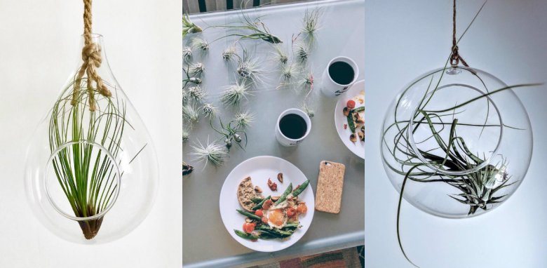 Dziwaczne roślinki, które od kilku sezonów podbijają targi designu. Oplątw to epifity – nie wymagają stałego podłoża, a jedynie wody, dozowanej im w formie kąpieli wodnej (cotygodniowego zanurzenia w wodzie na 5-10 minut) lub też spryskiwania wodą co 2-3 dni. Pochodzące głównie z Ameryki Południowej roślinki idealnie nadają się do wyeksponowania w wiszących (lub leżących) kulach. Sprawdzą się także jako ozdoba stołu, na którym mogą po prostu sobie polegiwać.