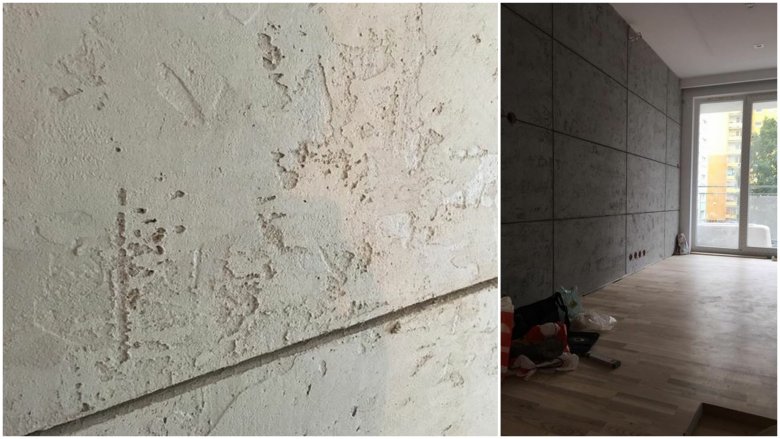 Lista zakupów nie jest długa, choć samo zadanie dość wymagające. Po pierwsze, trzeba dobrze wymierzyć ścianę, którą chcemy "betonować". Należy rozmieścić na niej płyty OSB. Gdy już ustalimy ile powinno ich być i jakie powinny mieć wymiary, wystarczy zamówić je w markecie budowlanym. Potem najtrudniejsze – dokręcanie płyt do ściany. Warto skorzystać z czyjejś pomocy. Pani Justyna, która z zawodu jest architektką, umocowała płyty na kołkach, a między płytami pozostawiła 1 cm odstępu z każdej strony (pamiętajcie o tym przy projektowaniu i mierzeniu płyt). Potem kładziemy grunt do drewna i czekamy aż ściana wyschnie.