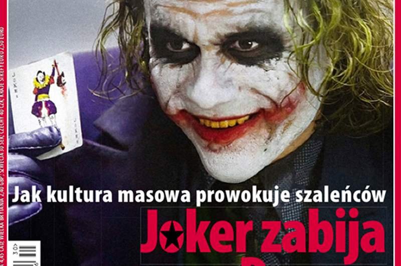 Nie rozumiem dlaczego okładkę dzisiejszej "Polityki" można pomylić z okładką "Faktu", co wcześniej raczej się nie zdarzało, mimo że obie winiety używają czerwonego koloru. Okładka przestawia Heatha Ledgera jako Jokera, który uśmiecha się jokerowym, krzywym uśmiechem. Podpis brzmi: "Jak kultura masowa prowokuje szaleńców. Joker zabija w Denver". Nie spodziewałam się po "Polityce", że zabierze głos w dyskusji o tragedii w Denver i jej związkach z popkulturą właśnie w taki sposób.