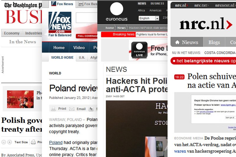 O zaciętej walce z ACTA nad Wisłą piszą z nie mniejszym zainteresowaniem w Europie, jak i w Stanach Zjednoczonych. W dużej mierze jest to spowodowane tym, iż oficjalnie polskim protestującym zdaje się przewodzić komórka znanej na całym świecie organizacji hackerskiej Anonymous.