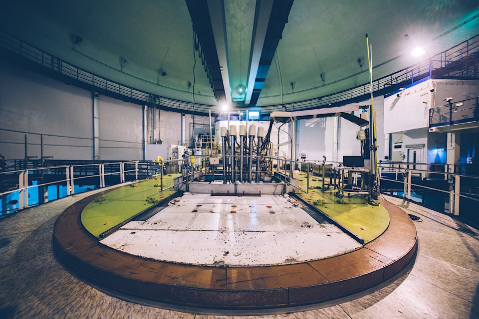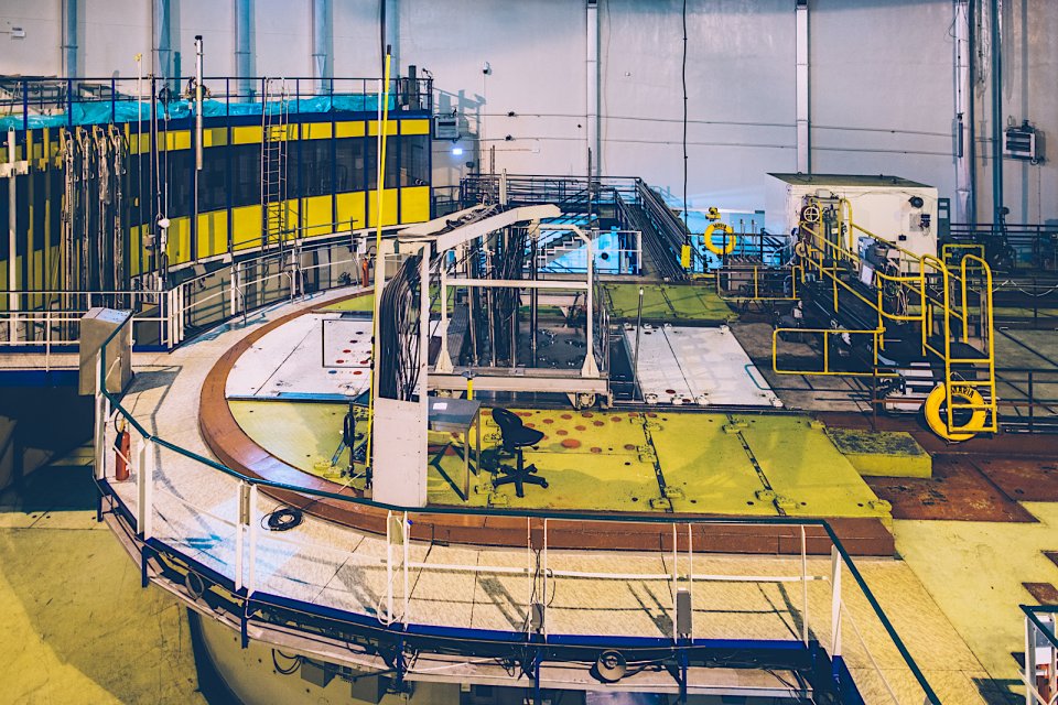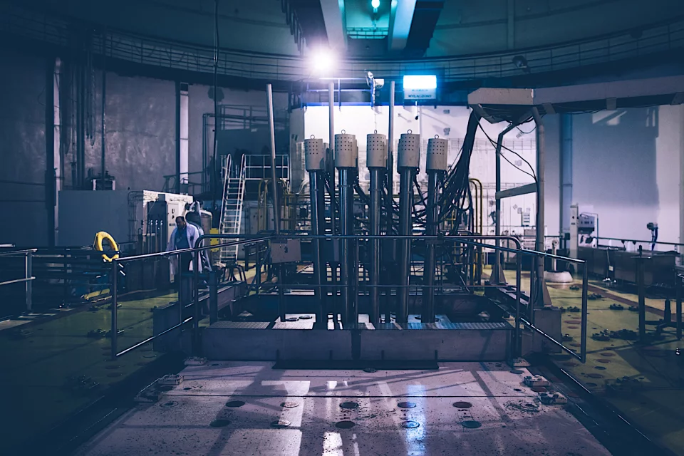 Kiedy zamykają się wrota, naszym oczom ukazuje się wielka hala z reaktorem zanurzonym pod wodą. Odprowadza ona ciepło, służy jako moderator i chroni otoczenie przed promieniowaniem neutronowym. W głębi widzimy niebieską poświatę. Nie została tam włączona żadna neonowa lampka, ale tak właśnie prezentuje się promieniowanie Czerenkowa w praktyce.