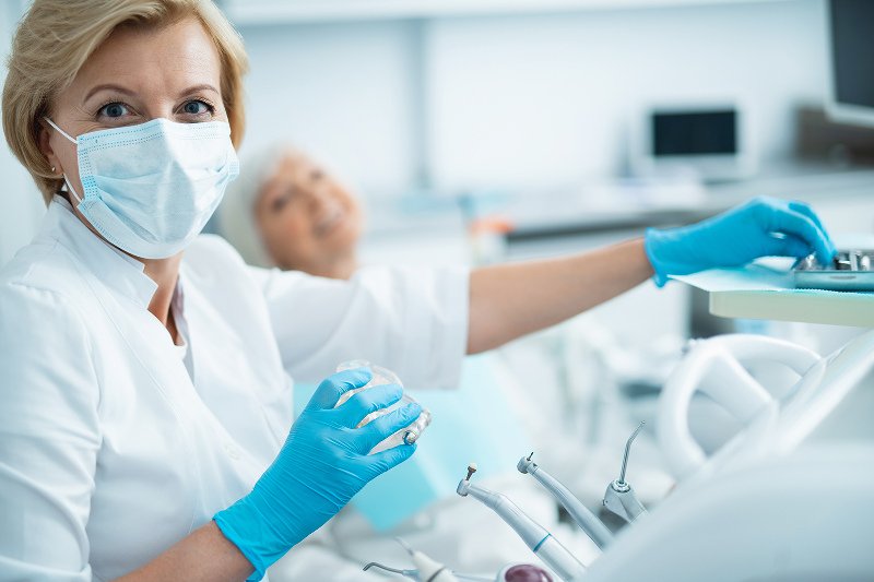 Musi być on wyposażony w specjalistyczny ubiór, którego podstawą są specjalne maski ochronne z filtrem HEPA (inna nazwa to FFP3). Ich najważniejszą, w kontekście obecnej sytuacji, właściwością jest zwiększona ochrona przed transmisją wirusa. Dodatkowo obowiązkowe jest stosowanie masek chirurgicznych, gdy stosowane maski FFP3 są z zaworkami. Do tego kombinezony ochronne, gogle, ochraniacze na buty, czepki, kaptury i przyłbice twarzowe. Taka ochrona niezbędna jest do zatrzymania aerozolu powstającego w wyniku różnych zabiegów stomatologicznych, a który mógłby być potencjalnym źródłem zakażenia.