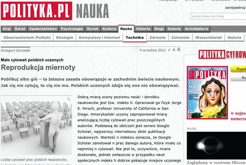 W „Polityce” opublikowano tekst prof. Grzegorza Gorzelaka pt. „Mało cytowań polskich uczonych. Reprodukcja miernoty” (część artykułu dostępna na stronie www). Zdecydowałem się zabrać głos.