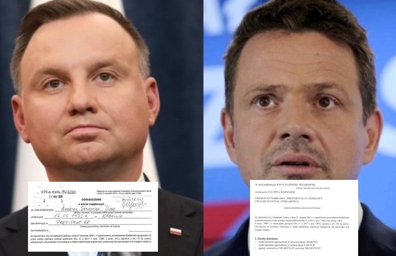 Na koncie urzędującego prezydenta jest 120 tys. zł oraz 30 tys. euro. Rafał Trzaskowski zaoszczędził zaś 48 tys. zł oraz ponad 4 tys. euro. W spadku po rodzicach dostał też mieszkanie o pow. 79 metrów kwadratowych, warte około 1 mln zł. Andrzej Duda razem z żoną jest współwłaścicielem mieszkania o takiej samej powierzchni. "Spłacamy z Agatą kredyt, jak prawie każde małżeństwo" – wyjaśnił polityk. Wobec jego oświadczenia majątkowego, ujawnionego niedawno przez Sąd Najwyższy, pojawiają się jednak poważne zarzuty ze strony opozycji.