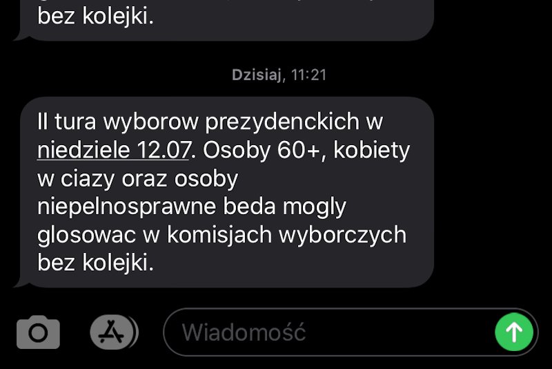 "II tura wyborów prezydenckich w niedzielę 12.07. Osoby 60+, kobiety w ciąży oraz osoby niepełnosprawne będą mogły głosować w komisjach wyborczych bez kolei" – tak brzmi wiadomość, która trafia dzisiaj do Polaków.