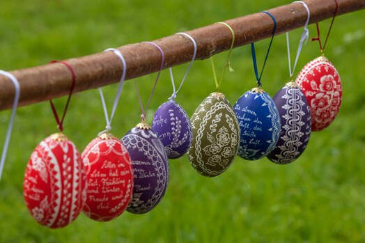 Podobnie jak w Polsce, Wielkanoc nie mogłaby odbyć się bez pisanek. We Włoszech jajka farbuje się razem, całymi rodzinami, zwykle w czwartek poprzedzający Wielkanoc. Jeszcze przed farbowaniem na jajkach umieszcza się kwiaty i trawy, a następnie zanurza się je w kolorowym roztworze barwników roślinnych na bazie szpinaku, czerwonej kapusty, marchewki, obierków cebuli i buraków. W ten sposób na jajkach powstają niepowtarzalne kwieciste wzory. Odwiedzający południowotyrolskie gospodarstwa Roter Hahn również mogą wziąć udział w tej tradycji i wspólnie przygotować pisanki zgodnie z własnym pomysłem.