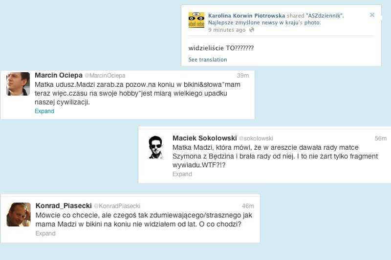 "Czegoś tak zdumiewającego/strasznego jak mama Madzi w bikini na koniu nie widziałem od lat. O co chodzi?" – napisał o artykule "Super Expressu" Konrad Piasecki. Dziennikarz RMF FM to nie jedyną osoba, którą "SE" zszokował.