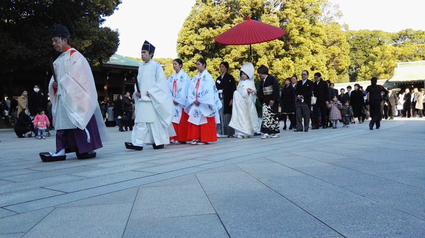Przypadkiem trafiłem na tradycyjny ślub, który odbywał się w parku Yoyogi.
