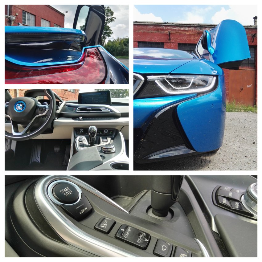 I nie ma się co dziwić, bo poza tym, że BMW i8 jest rzadkim widokiem, to samo w sobie ma sylwetkę supersamochodu i z daleka może zostać pomylone np. z Ferrari. Tak, tak. Jednego razu podeszła do mnie dwóch młodych chłopaków, którzy założyli się, co to za samochód. Wygrał ten, który obstawiał BMW. Drugi postawił właśnie na Ferrarkę. Tak właściwie o tym, że to BMW, przypomina jedynie przód auta, w którym można dopatrzyć się „genu BMW”.