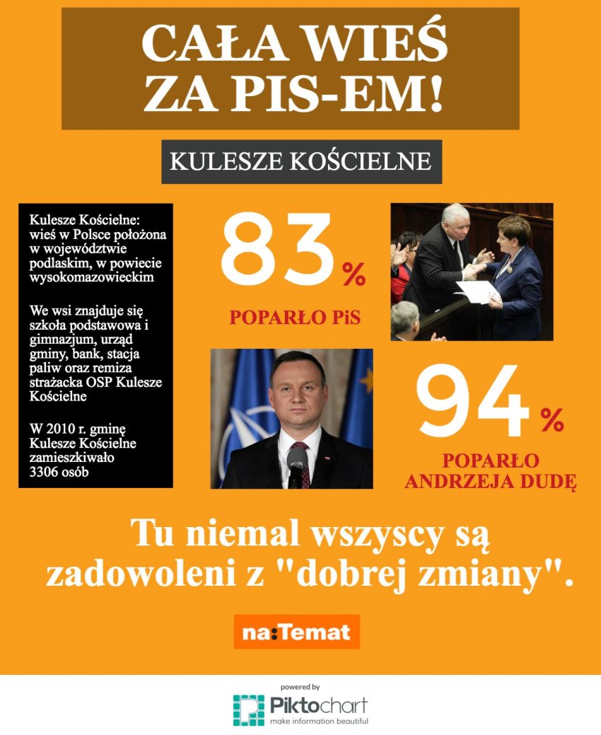 Dokładnie tacy – prości, raczej niewykształceni i żyjący z dala od miejskiego zgiełku ludzie, mieszkają we wsi Kulesze Kościelne, gdzie kandydaci PiS-u zdobyli rekordowe poparcie w skali całego kraju.