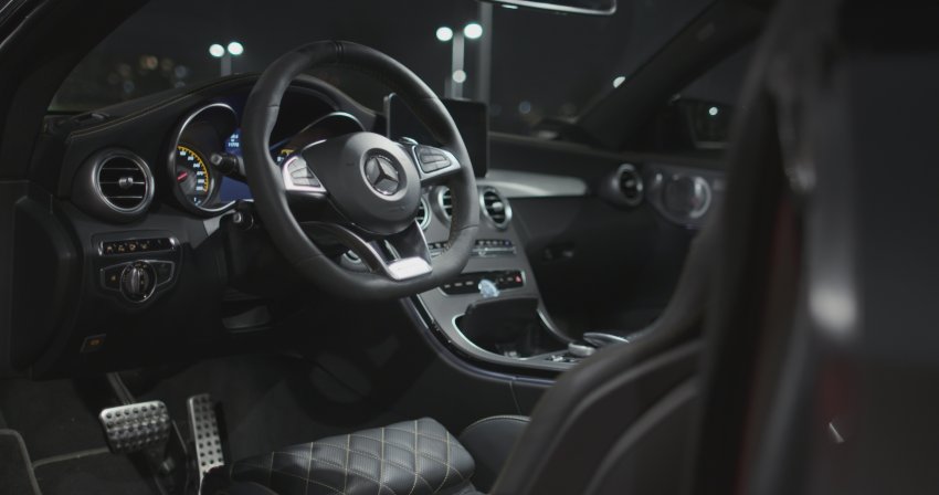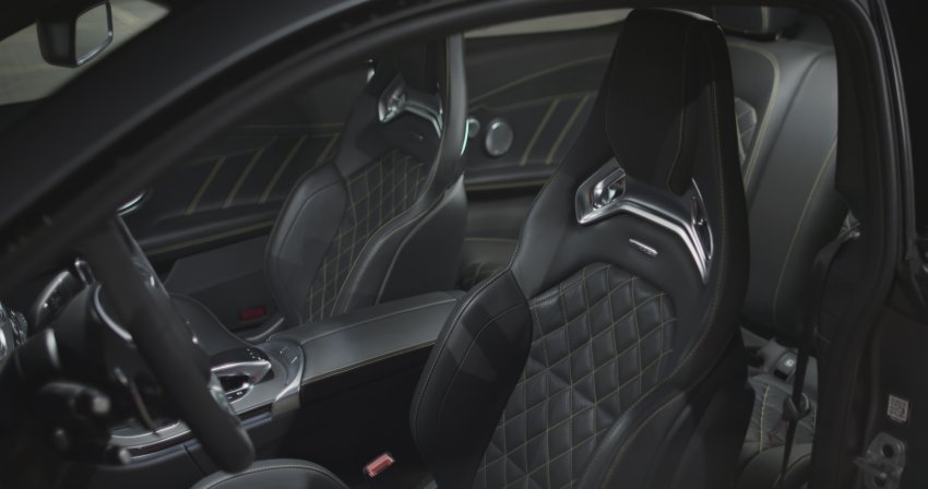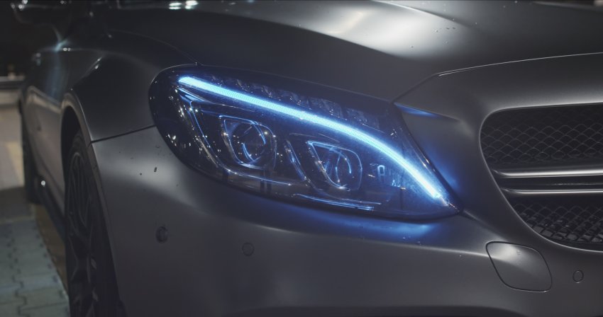 Mimo obiektywnie nie tak dużych rozmiarów jest szeroki i niski. Poszerzony tam, gdzie tego się oczekuje. I doprawiony akcentami z napisem AMG na chłodnicy, klapie bagażnika czy felgach. Szatan wcielony z dwoma rogami – to znaczy ostrymi liniami na masce, które widać także zza kierownicy.Czy wspomniałem już o podświetlających się na niebiesko światłach podczas otwierania samochodu?