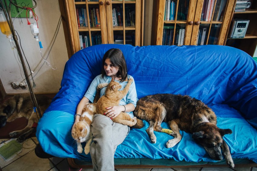 Od dziesięciu lat nie była na urlopie. Do niedawna wszystko robiła sama. – Wstaję rano i zaczynam dzień od sprzątania. To stare zwierzęta, czasem nie wytrzymają, albo zwyczajnie nie chce im się załatwiać na dworze – tłumaczy. Potem zaczyna się przygotowywanie posiłków, podawanie lekarstw. Około południa zwierzęta są nakarmione. To jednak nie znaczy, że można odpocząć.
