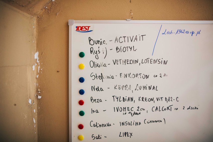 – Cały czas jest coś do zrobienia. Kotce trzeba zmienić opatrunek, a psu kroplówkę. Tu przemyć, tak wyczyścić, przesypać, zabandażować, poprawić. Wypuścić na dwór. Wpuścić. Podać jedzenie kotom, które jedzą dwa razy dziennie. Znów wypuścić psy na spacer – wylicza. Czasem trzeba pojechać na zakupy, innym razem do weterynarza. Dzień Iwony Kantorowicz kończy się zwykle około 2-3 w nocy.