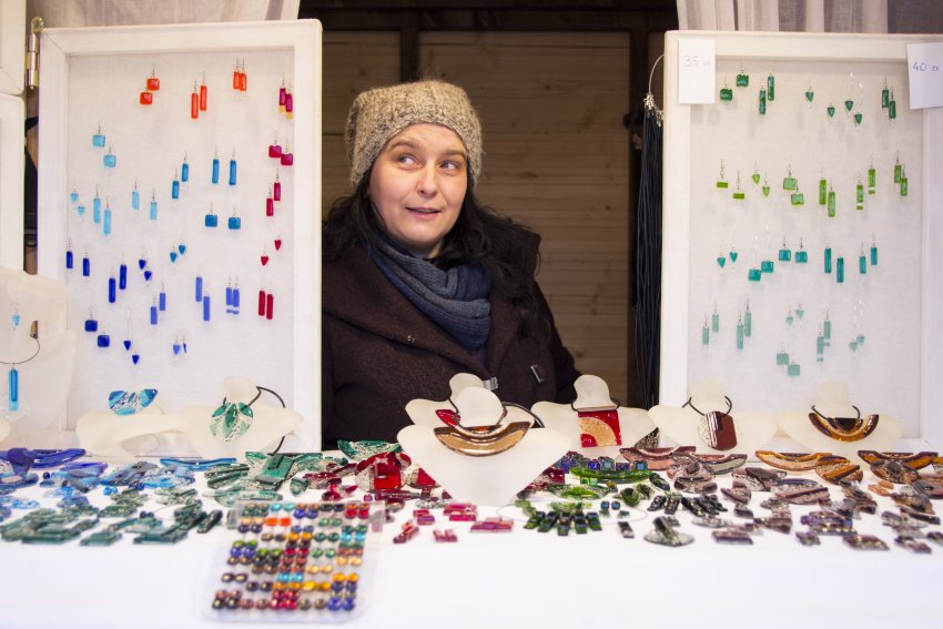 – To czas i miejsce uświadamiania ludziom, że rzemiosło artystyczne jeszcze nie umarło – wyznaje pani Ania z pracowni rękodzielniczej Vericone, której stoisko odwiedzamy, zaintrygowani widokiem oferowanej tam biżuterii ze szkła. Na półce wystawiono różnych kształtów i wielkości wisiory, kolczyki, pierścionki, na niewielkich popiersiach eksponowane są też kolie. Wszystko wykonane własnoręcznie, każdy przedmiot stanowi zatem coś unikalnego.