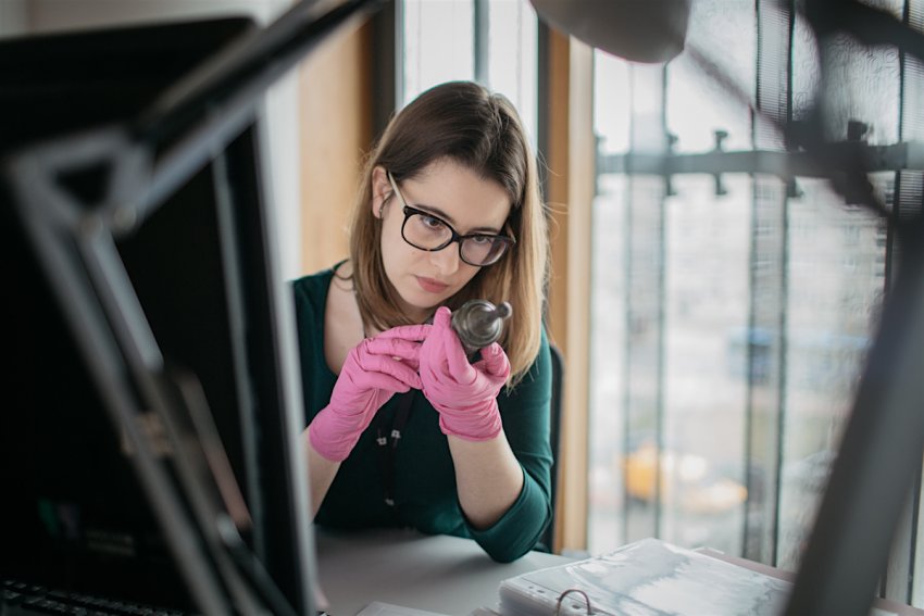 Specjalizuję się w konserwacji papieru. Obiekty, które do mnie trafiają, są często w tragicznym stanie. Załóżmy, że mamy druk z fragmentem zapisków odręcznych, który rozpada się na kawałki. Pierwsza myśl: trzeba by go scalić. Problem w tym, że rękopis wykonano ołówkiem kopiowym, a do tego na powierzchni druku mamy zmiany mikrobiologiczne. Scalić dokument możemy tylko klejem, więc nie obejdzie się bez wilgoci. Ta z kolei może sprawić, że ołówek nam “popłynie” lub doprowadzi do reaktywacji grzyba.