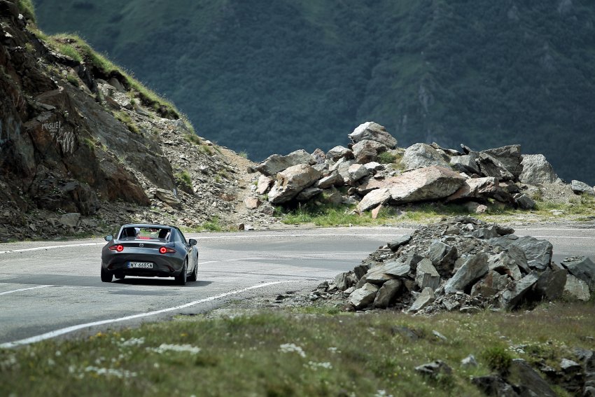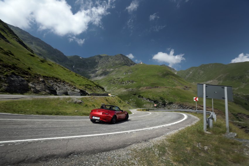 Zadanie, które przed nami postawiono, było proste: pokonać trasą Transfogaraską za kierownicą Mazdy MX-5, kultowego roadstera, który niedawno doczekał się nowej wersji RF. Do tej pory te małe resoraki miały materiałowy dach, który w zabawny sposób składało się ręcznie.