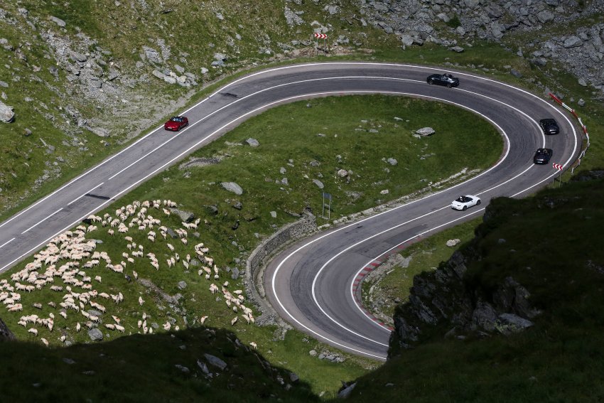 Żeby było lepiej, w tym samym momencie na Transfogaraskiej odbywał się podobny event Lamborghini. I nie sądziłem, że kiedykolwiek w życiu takie słowa wyjdą spod moich palców, ale… wolałem siedzieć w naszych malutkich MX-5-tkach. To idealny samochód na ten rodzaj trasy, dużo większe kilkusetkonne potwory w tamtych warunkach nie dawałyby aż takiej frajdy.