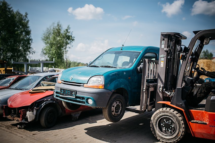 Wkrótce w ślad za Kangoo ruszyliśmy na złomowisko do Wiązowej. W drodze wyobrażamy sobie, że brud, kurz i spoconych facetów ze szlifierkami do cięcia blach.