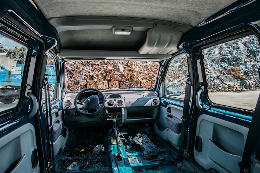 Do usunięcia szyby używa się noża ze specjalnym odkurzaczem. Nie ma nawet najmniejszego odłamka szkła. Czy to jest nudna praca? – Nigdy się nie nudzę. Zawsze coś się dzieje – zapewnia szef złomowiska i wywozi ogołocone Kangoo pod dźwig.