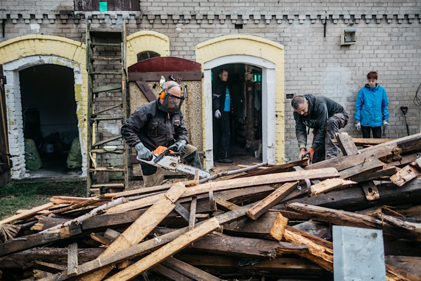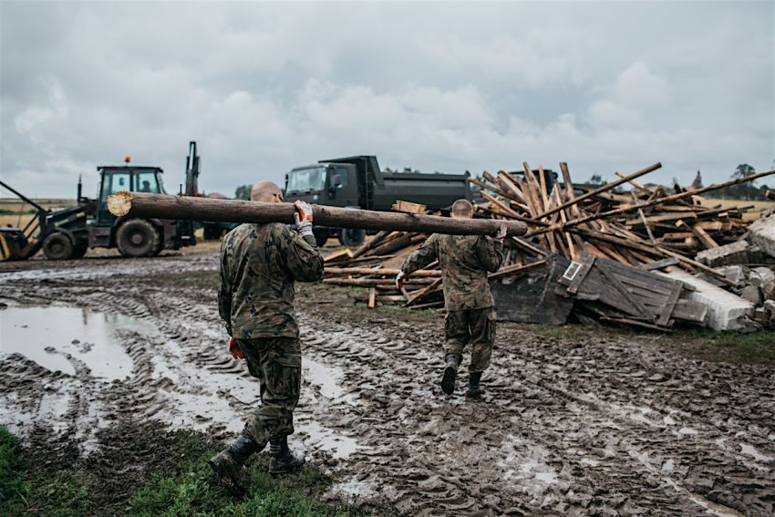 Ofiarom nawałnic pomagają wolontariusze z warsztatu terapii zajęciowej z Sępólna. Przyjechali studenci z Portugalii, Armenii, Czeczenii i Łotwy.