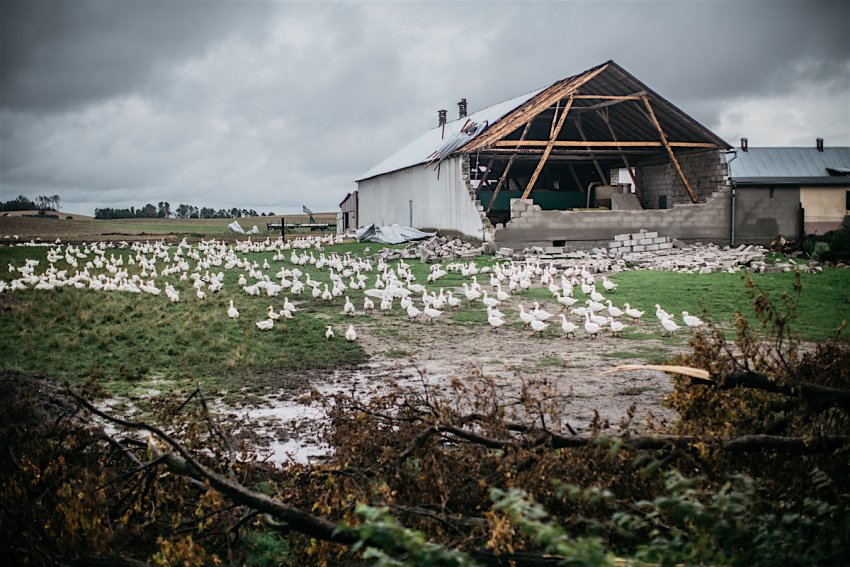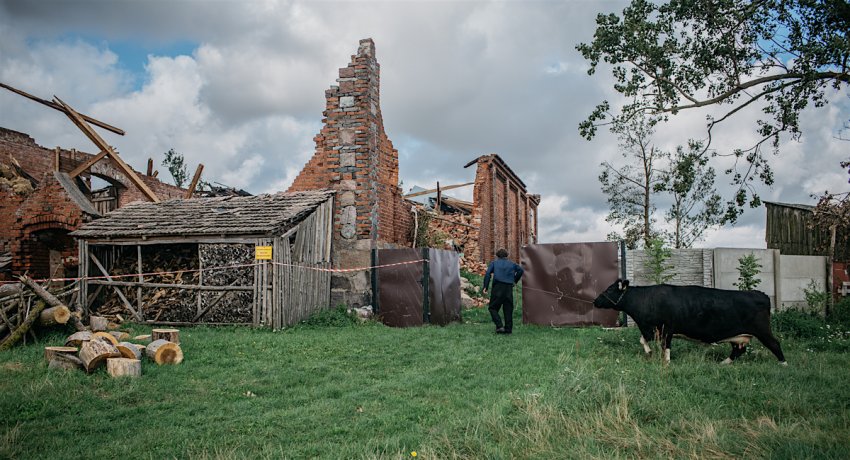 Piotr Rynk z Waldowa ma straty na 700 tys zł. Nie chodzi tu wyłącznie o dom. – Straciłem zwierzęta. Cały szczyt w domu do wymiany. Jak przyszła wichura to trzymaliśmy okna w domu, żeby nawałnica nie wdarła się do środka. Świeciliśmy latarką, bo oczywiście prądu nie było. I trudno było dostrzec, co to za żywioł – grad, deszcz czy tornado. Ci co poszli np. pozamykać stodoły, to nie dali rady już potem do domu – wspomina.