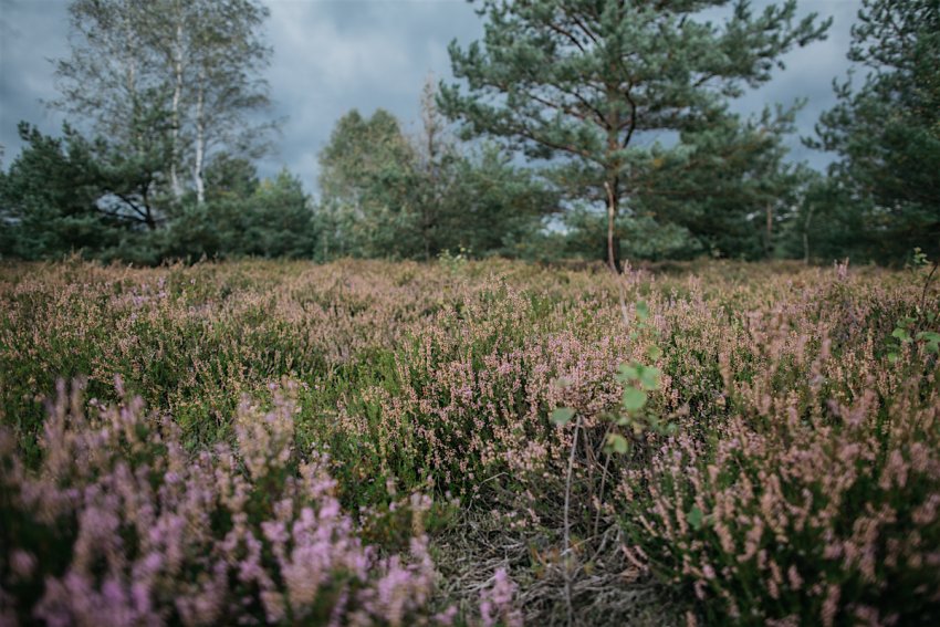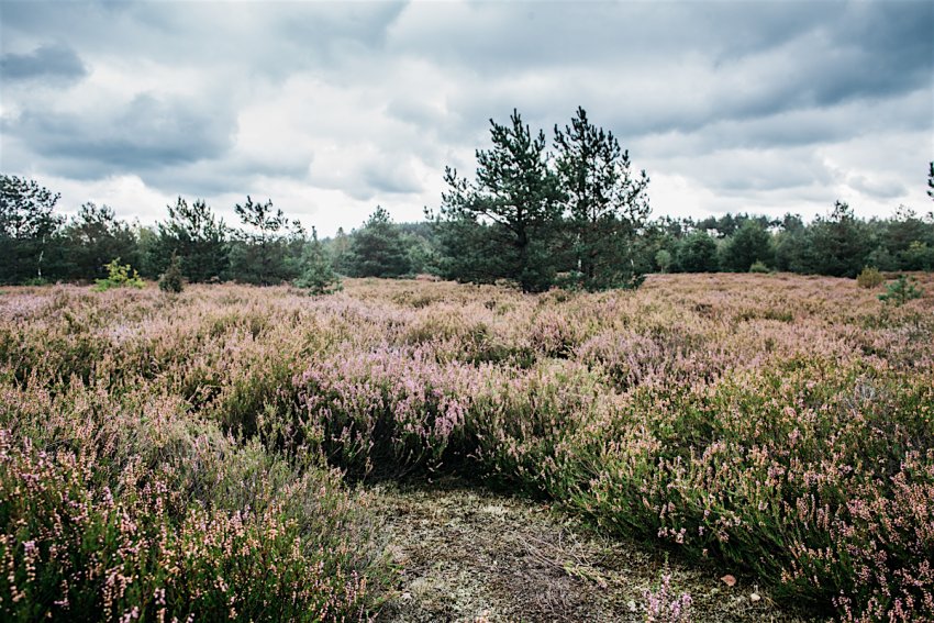 Niewiele dalej las znika, a pojawiają się coraz rozleglejsze wydmy. A razem z nimi wrzosy po horyzont. To widok, który trudno racjonalnie wytłumaczyć. Miejscowość – wydawałoby się – pośrodku niczego, a tu taka niespodzianka.